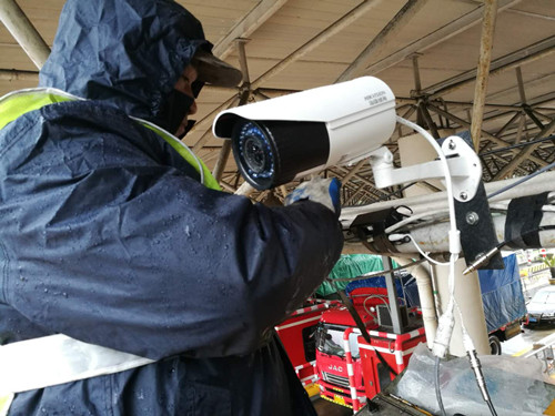 圖為工作人員在調試攝像頭 為趕在春運前完成這項工作,中心全體隊員克服雨雪天氣帶來的強降溫等困難,兵分四路加班加點,在各收費站內外廣場安裝固定云臺攝像機,或半蹲著穿梭于頂棚下方狹隘空間鋪設線路,或冒雨來回奔波監控室與車道間調試設備。經過連續幾天的努力,四個站共計10臺“云視頻”監控攝像頭已全部安裝調試完畢。在這過程中,由于天氣惡劣,中心兩位隊員不幸感冒發燒,其中一位甚至還燒到了近40度,當領導讓其回去好好休息時,他只是輕描淡寫地說了一句:“無大障,睡一覺就好。”