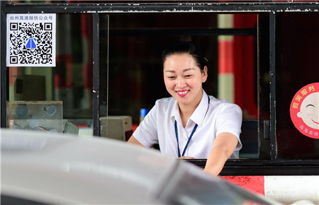圖為收費(fèi)員文明收費(fèi)現(xiàn)場(chǎng)