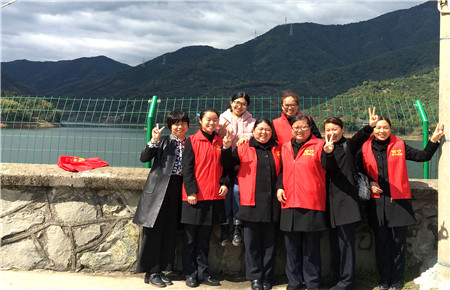 圖為臺(tái)州南女職工在水庫(kù)邊上合影