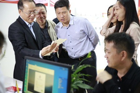 圖為市委常委、常務副市長董貴波在現場與公司總經理張建平交流