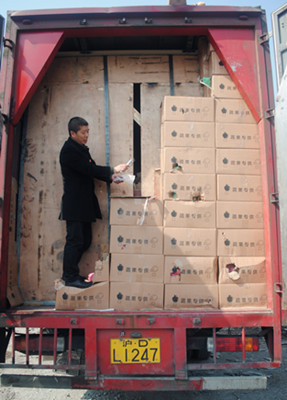 今年3月1日凌晨2時(shí)許,一輛標(biāo)有“蔬菜特供”、車牌號(hào)為滬DL1247的紅色廂式貨車駛進(jìn)臺(tái)州高速公路臺(tái)州收費(fèi)所“綠農(nóng)車”專用收費(fèi)道口,出口司機(jī)申報(bào)“綠農(nóng)車”運(yùn)送蘋果,要求減免通行,讀卡后顯示該車免費(fèi)金額為250元,收費(fèi)人員按規(guī)定對(duì)該車進(jìn)行開(kāi)廂核查。