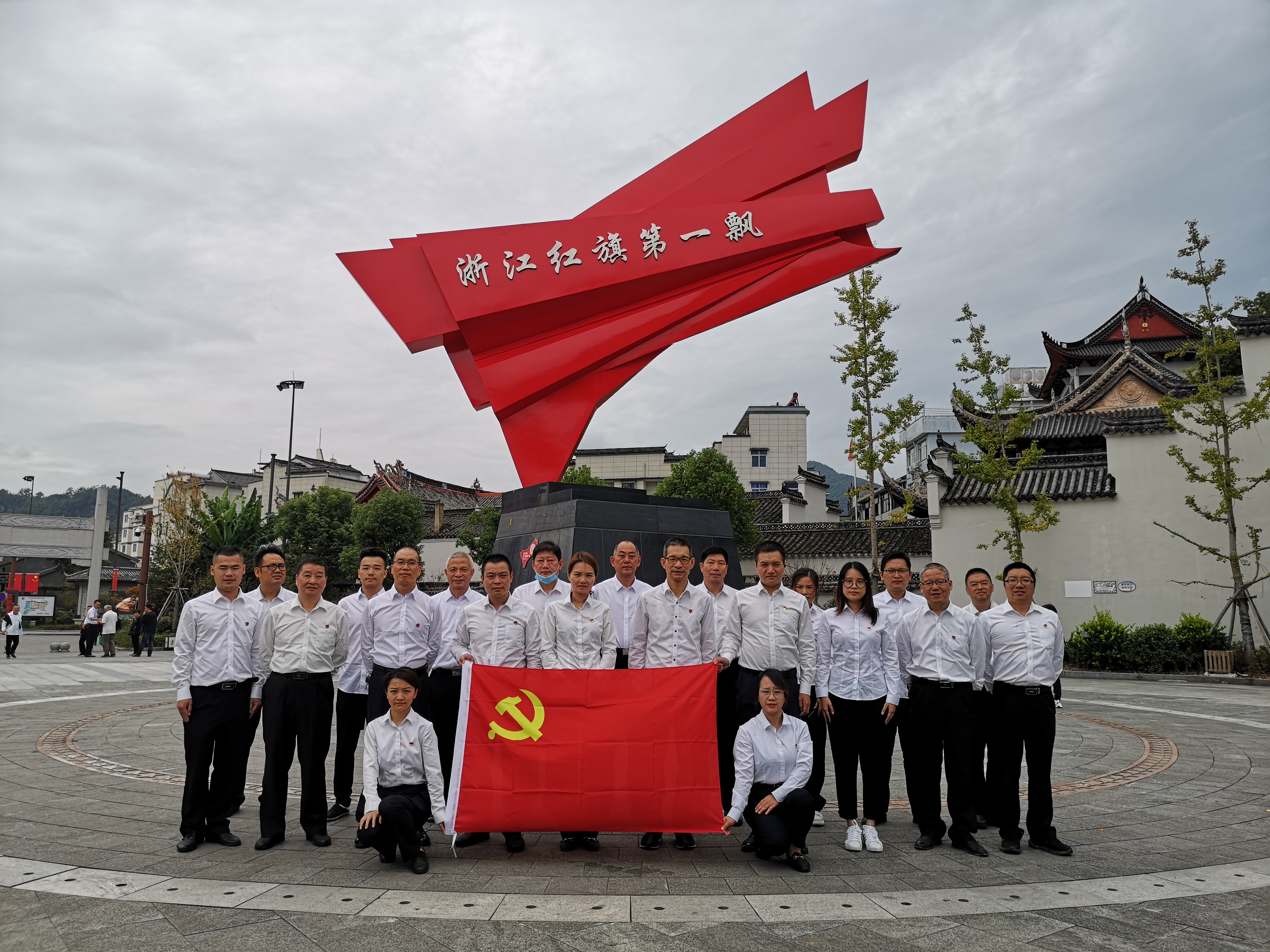 (圖為紀念碑黨員合影) 亭旁起義打響了浙東武裝奪取政權的第一槍,建立了浙江第一個蘇維埃政權,被譽為“浙江紅旗第一飄”。 黨員同志們沿著先烈們的足跡,接受著紅色精神的洗禮。在亭旁起義紀念碑下,同志們重溫入黨誓詞;在紀念館,聆聽亭旁起義的歷史;在城隍廟,感受紅色區域的家國情懷……黨員們紛紛表示,一定會銘記歷史、繼承傳統。