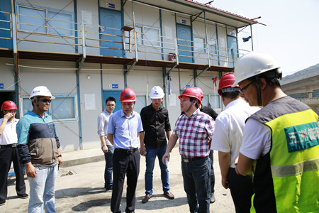 圖為集團副董事長、總經理張建平檢查內環(huán)路8#立交民工生活區(qū)