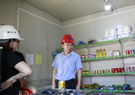 圖為集團副董事長、總經理張建平檢查內環(huán)路8#立交民工小賣部